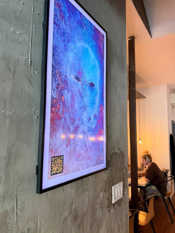 “Into the Blue” displayed at Lion’s Milk Cafe in Brooklyn, NY, April 2025.