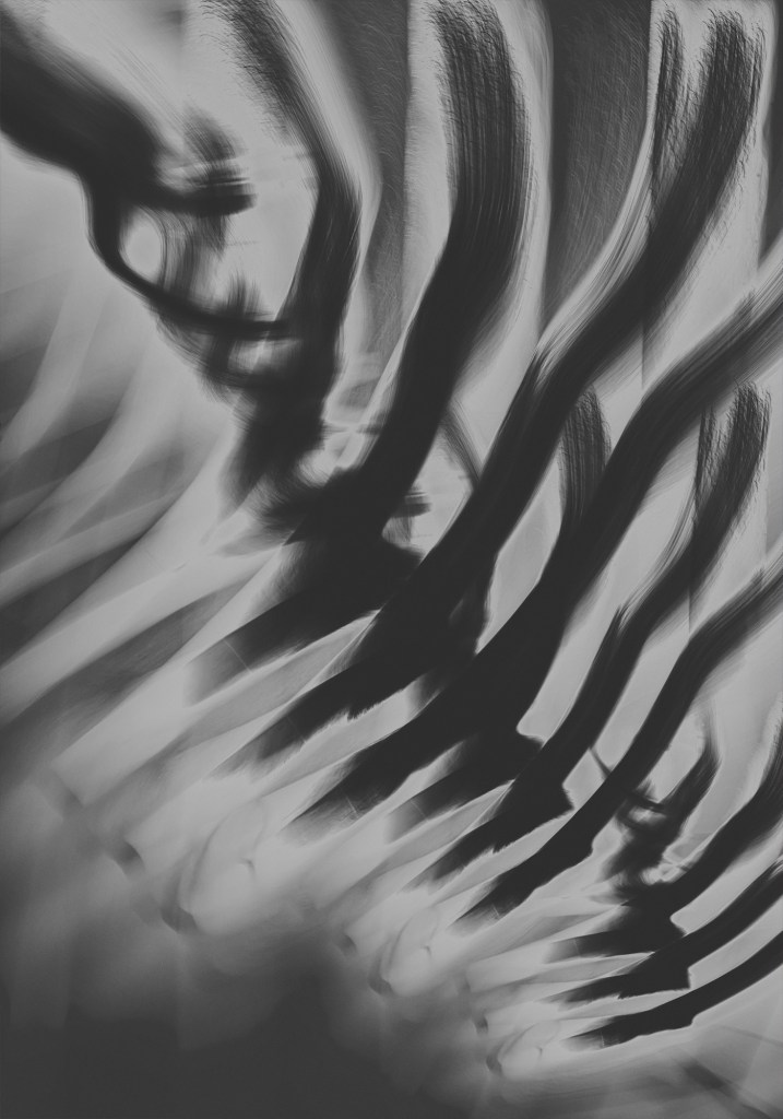 It explores the quiet rhythm beneath movement. A flow of form that feels both human and distant, like a memory surfacing through fog. Soft grey and black tones stretch and twist, creating a sense of internal structure without defining it. There’s a tension between motion and stillness, between what is seen and what is sensed.
